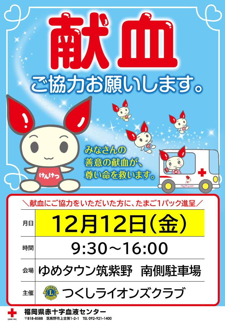 ゆめタウン筑紫野 1F南側駐車場にて献血を実施いたします!