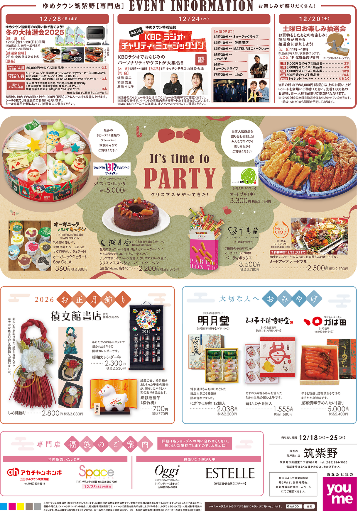ゆめタウン筑紫野 イベント/キャンペーン 12/18(木)~25(木) ゆめタウン筑紫野 youmeバーゲン