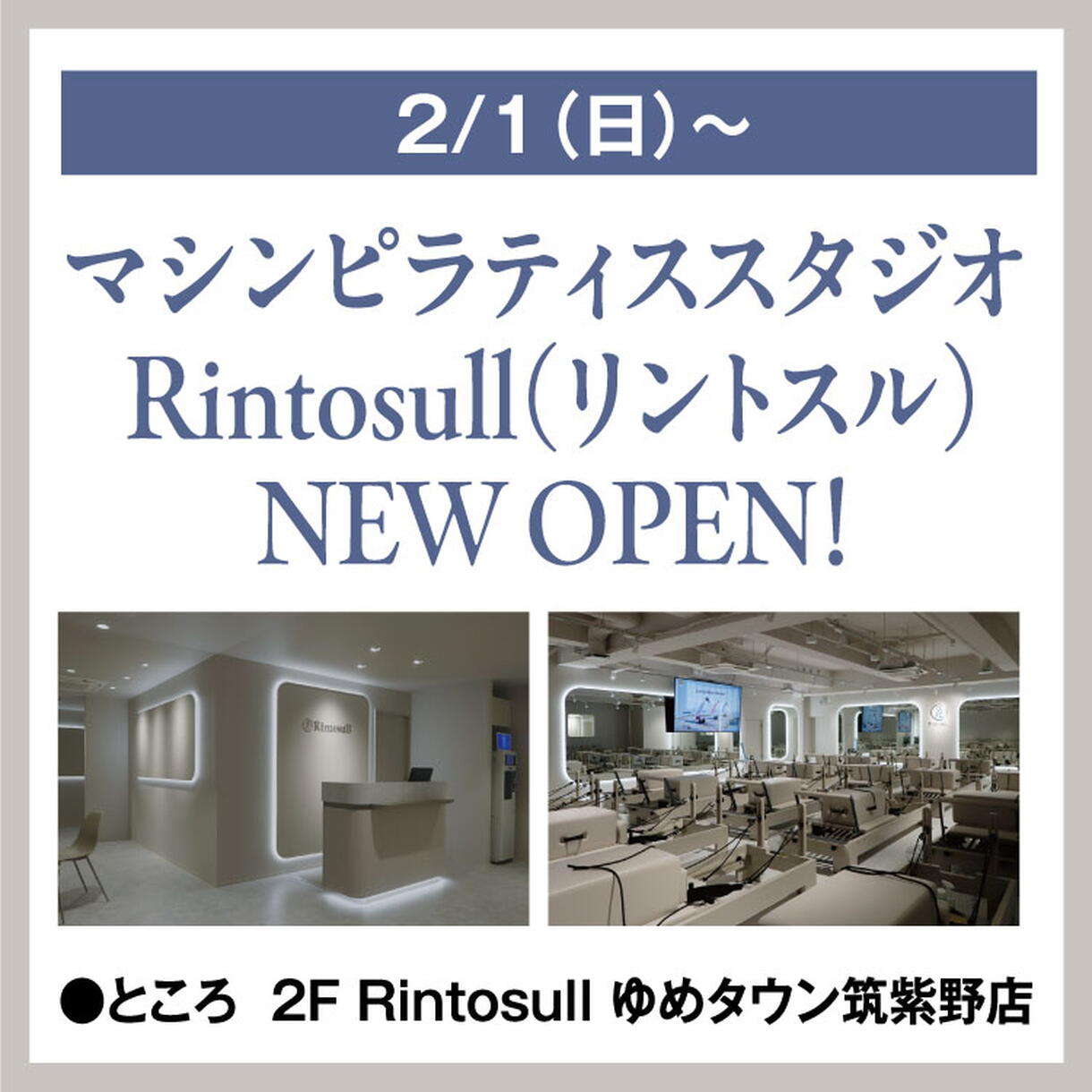 2/1(日)からマシンピラティススタジオRintosull (リントスル)がNEWオープン!