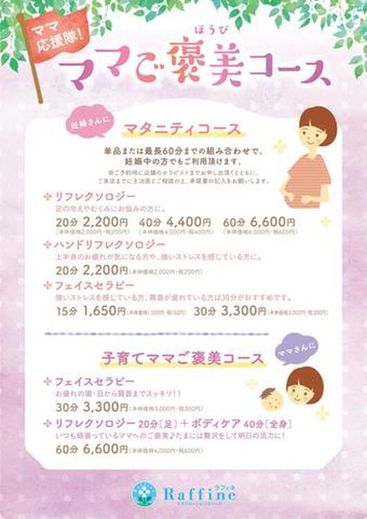 リラクゼーション/ボディケア/リフレクソロジー/ハンドリフレクソロジー/フェイスセラピー/ヘッドショルダー/プロヴァンスバス/ハーブティー/ラフィネグループ