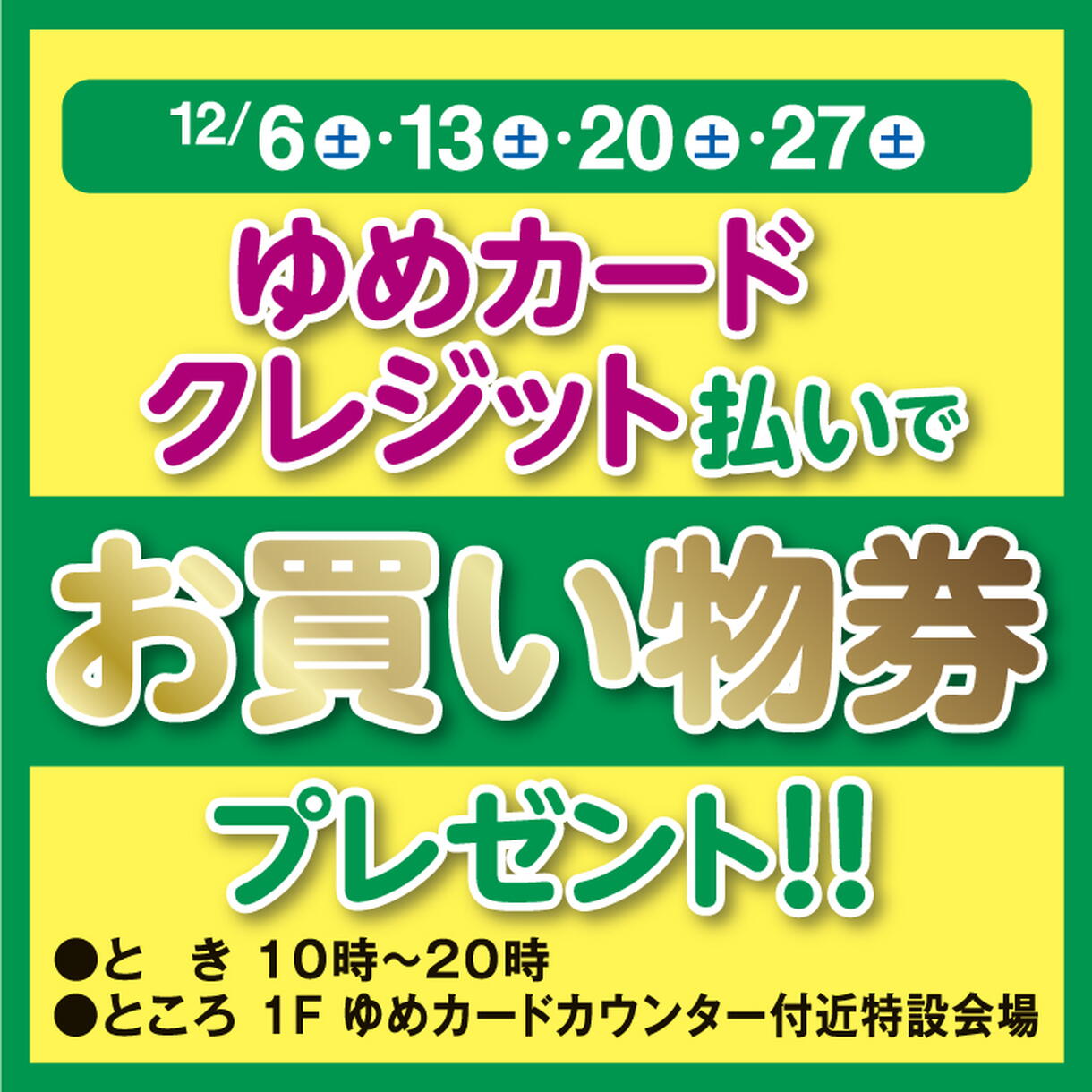 ゆめカードクレジット払いでお買い物券プレゼント!!