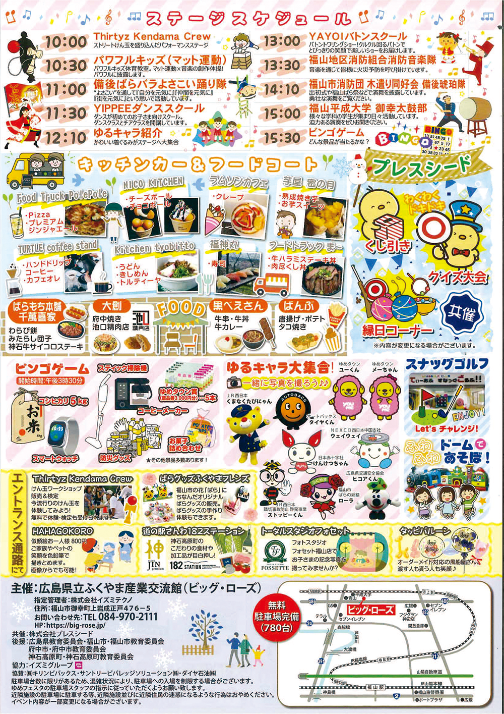 緊急車両展示やステージイベント、キッチンカーなど