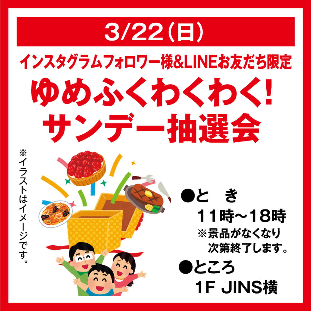 インスタグラムフォロワー様&LINEお友だち限定 ゆめふくわくわく! サンデー抽選会