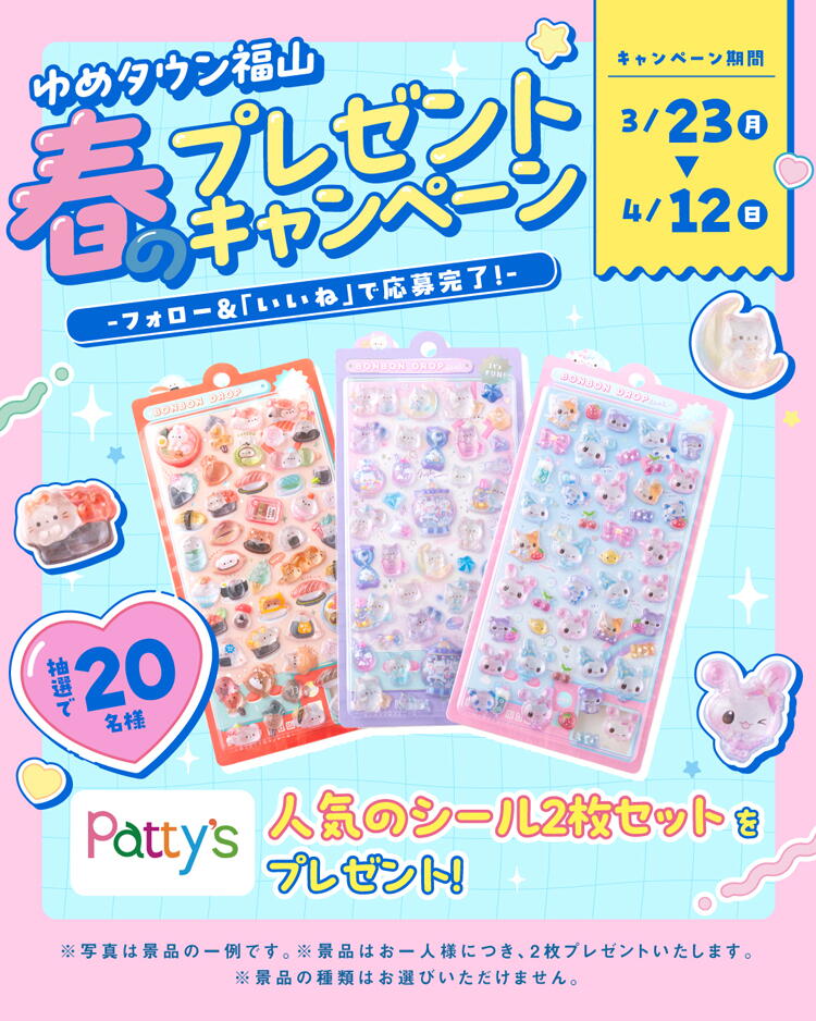 厳正なる抽選の上、キャンペーン終了後プレゼントお渡し対象者様のみ「ゆめタウン福山公式アカウント(@youmetown_fukuyama)」からDMにてご連絡させていただきます。