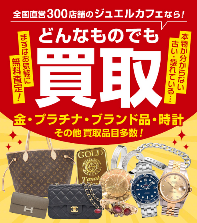 ジュエルカフェは日本全国に直営店250店舗を展開する超大型買取専門店!