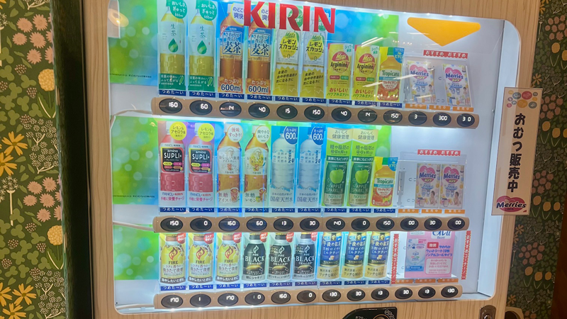 飲み物とおむつの販売機を設置しています。