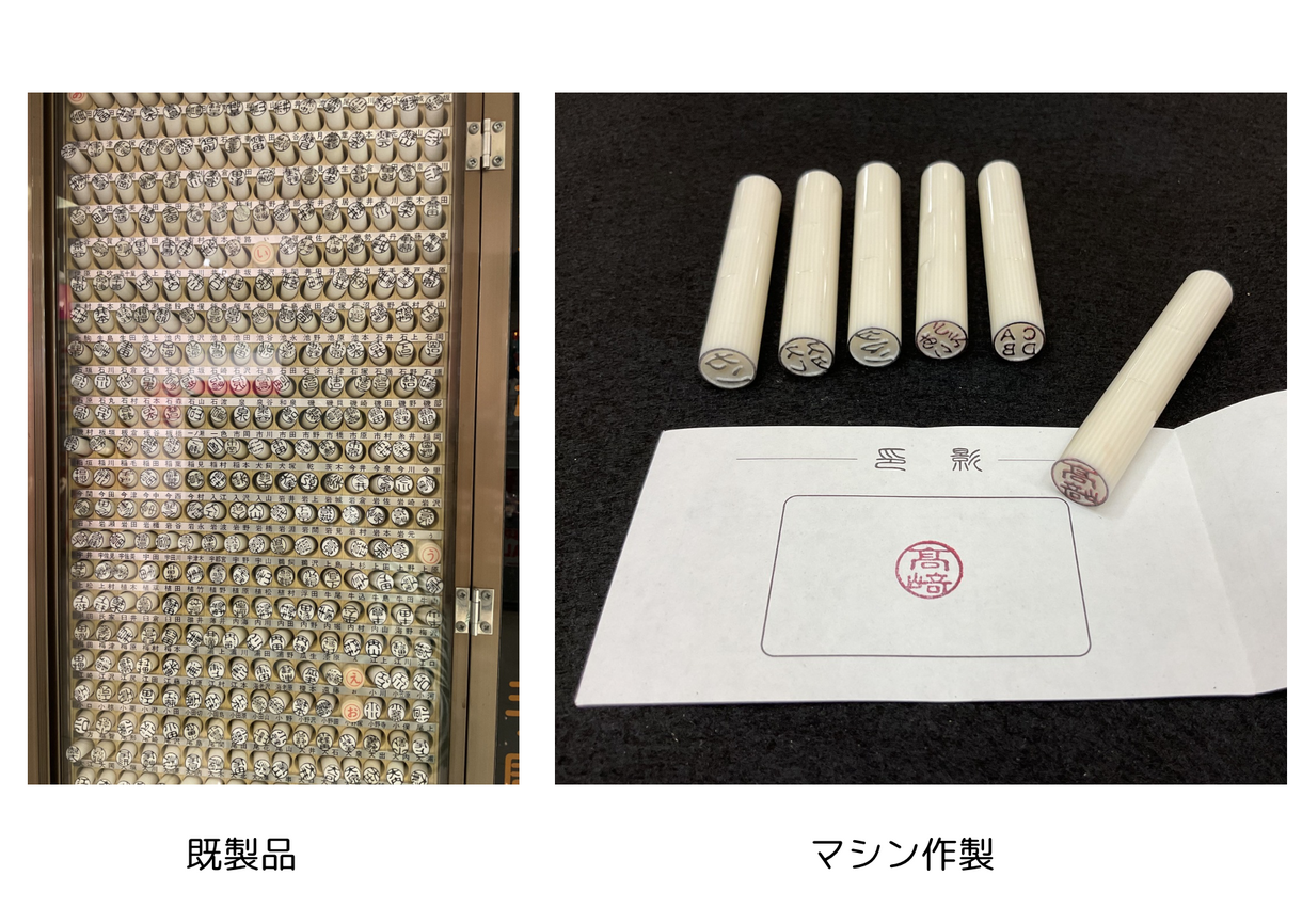 ※マシン作製は4文字まで彫刻可能ですが、書体は古印体・縦書き固定です。