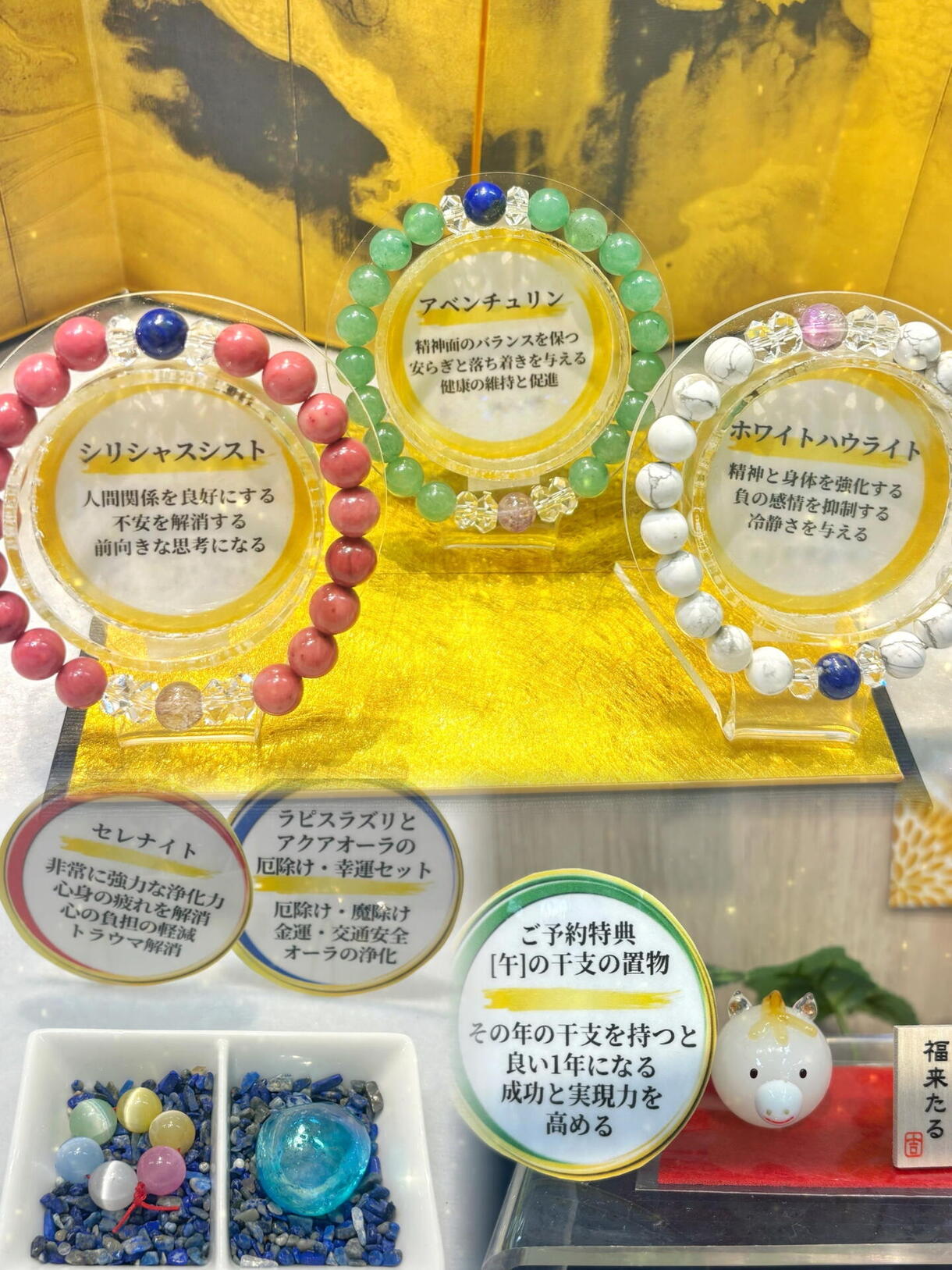強力な浄化のお守り石のセレナイトの丸ビーズが付いています♪そして、ご予約特典で
