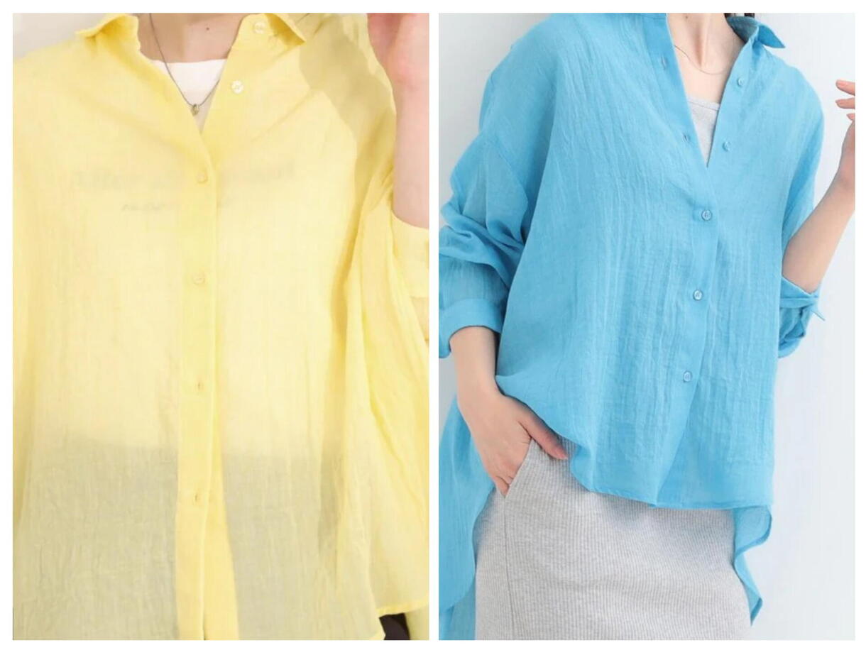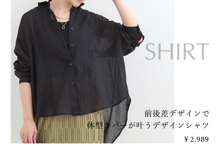 大胆な前後差がポイントのシアーシャツ。前からはすっきり見え、後ろは裾が長くて安心の丈感です。これからの季節の羽織にオススメです★