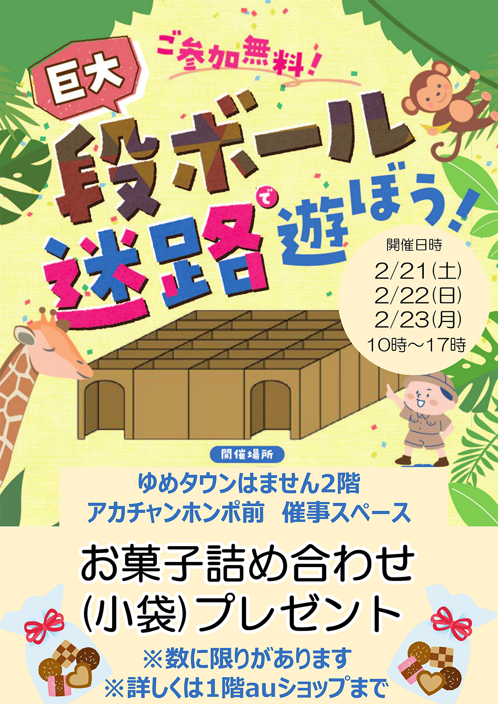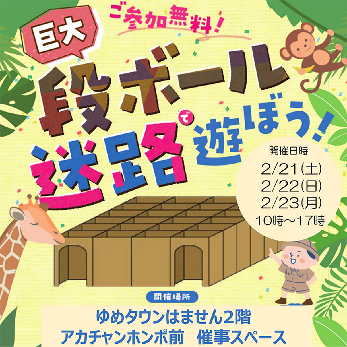 2/21(土)~23(祝・月) 巨大段ボール迷路で遊ぼう!