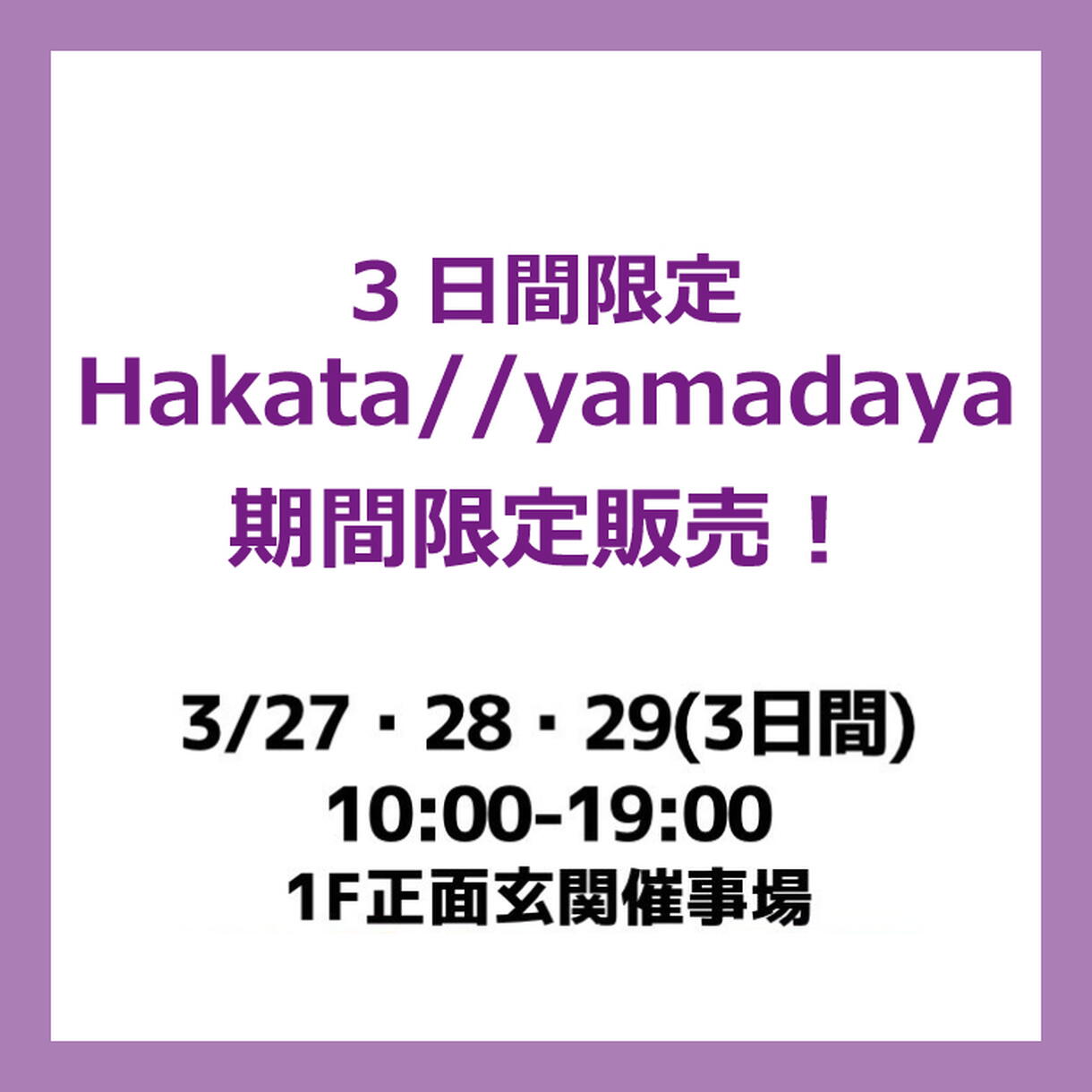 3/27(金)~29(日)3日間限定 Hakata//yamadaya 期間限定販売!