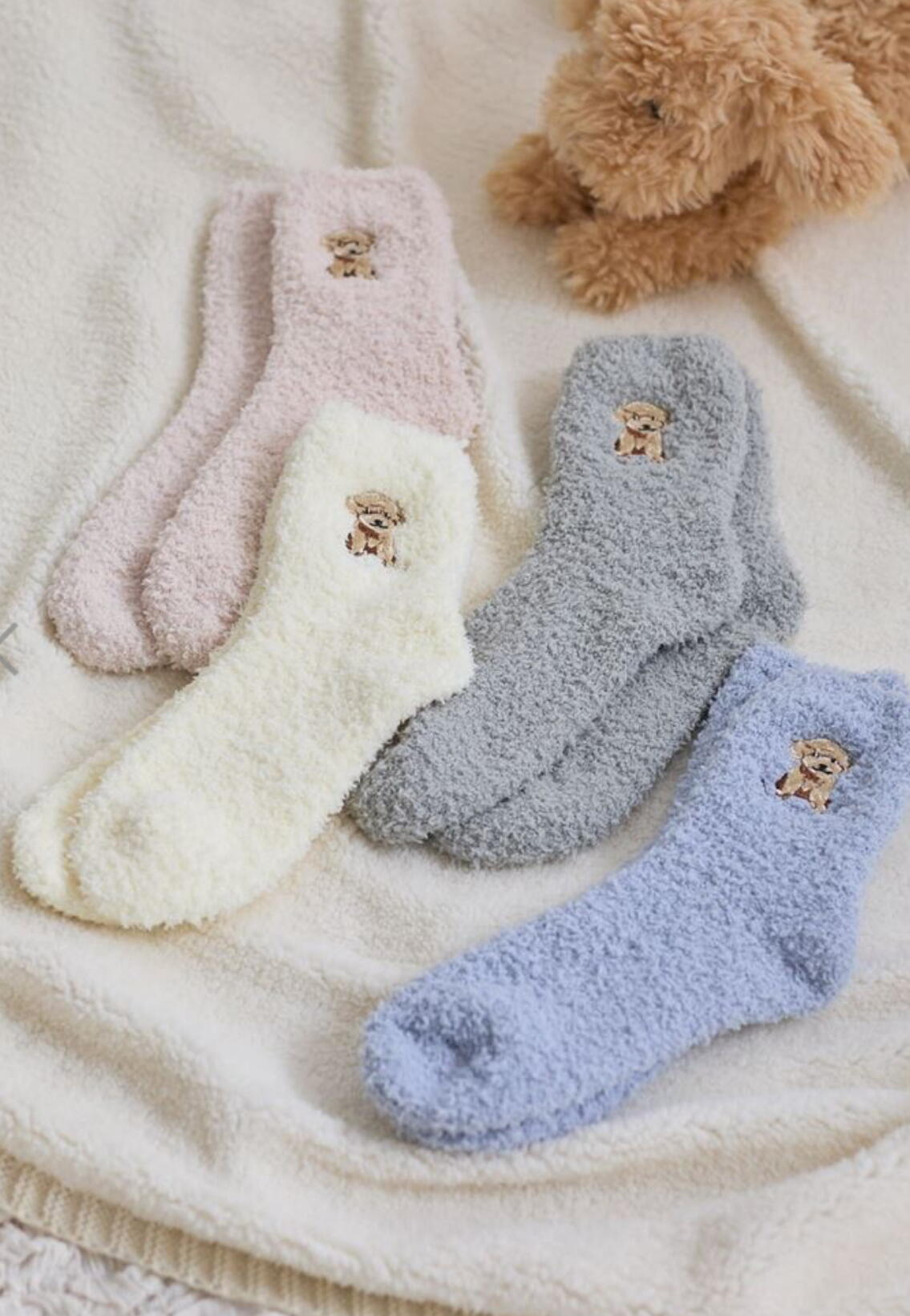 ふんわりやわらかなモール素材で仕立てた、あたたかみたっぷりのルームソックス。