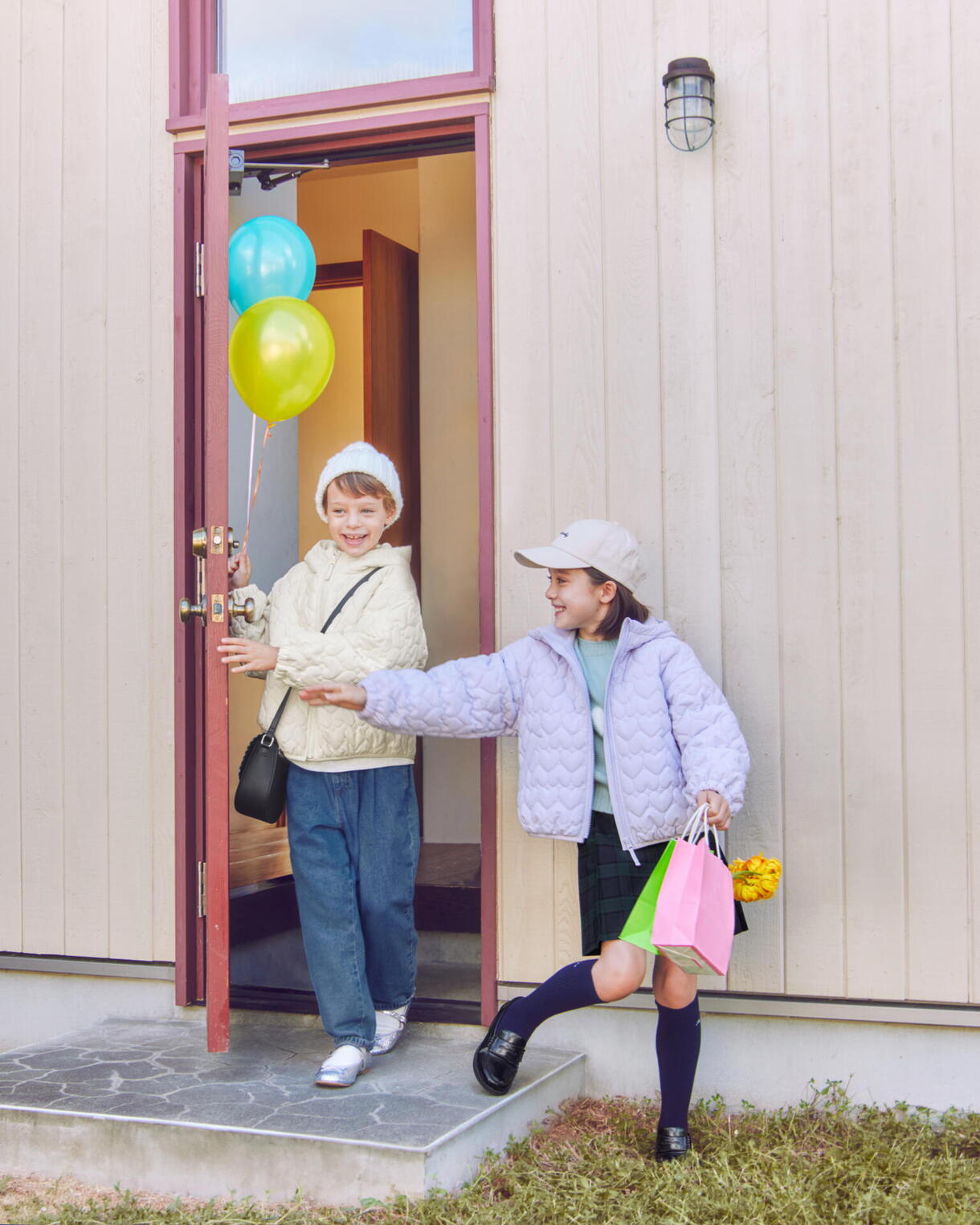 ハート型のキルティングステッチがデザインポイントで、胴体部分の裏地はフリース素材なのであたたかいアイテムとなっています。