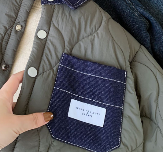 落ち着いたカラーで、デニム切り替えの襟がアクセント!