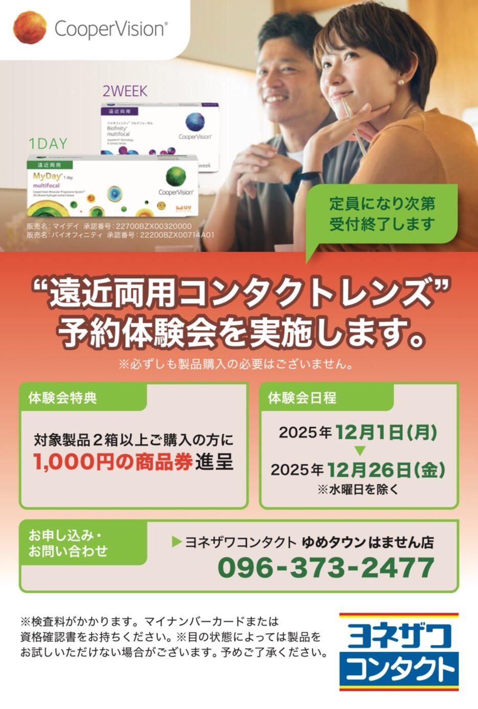 遠近両用コンタクトレンズの予約体験会を開催中です!