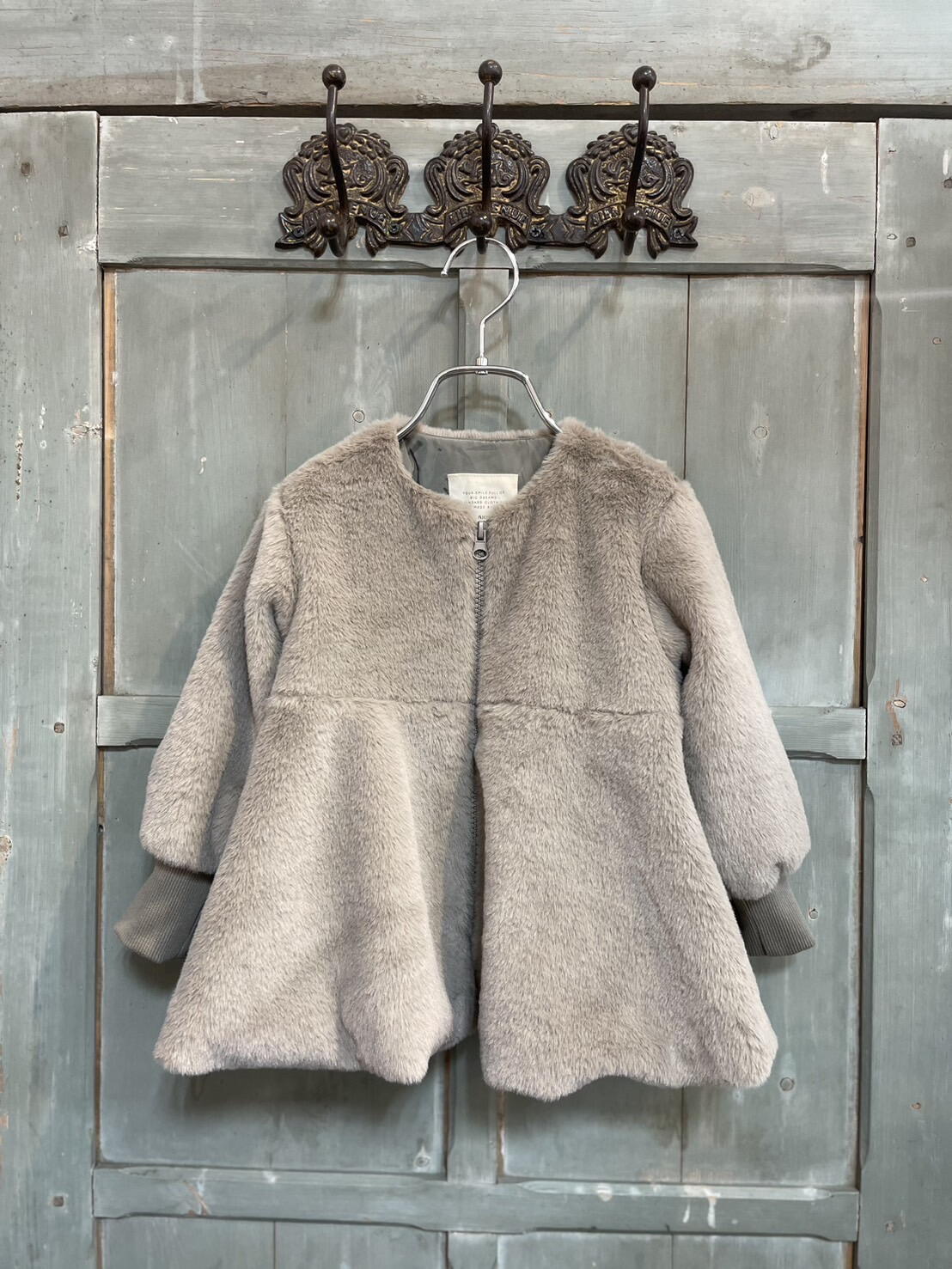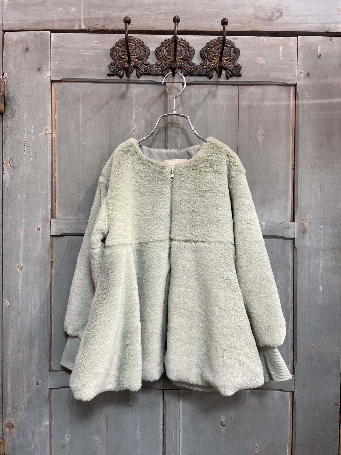 RIO よりペプラムデザインが可愛いノーカラーファージャケットが入荷いたしました。なめらかな肌触りのフェイクファー素材で、家庭での洗濯も可能です。