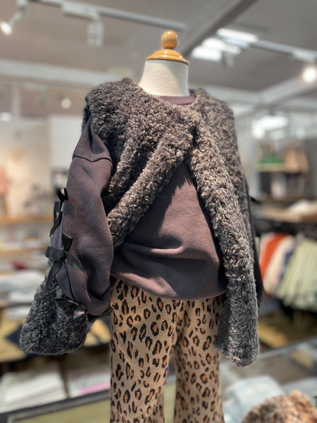 まるでプードルのようなファー素材を使用したベストは子どもでも着用しやすい前スナップボタン付きでお尻が隠れる着丈です。兄弟姉妹のお揃いにもおすすめです。