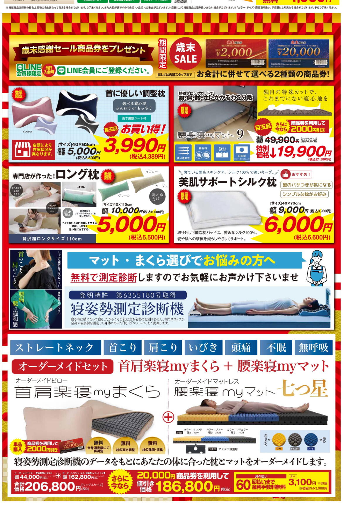 首肩楽寝myまくら+腰楽寝myマットセットに使える20,000円の商品券