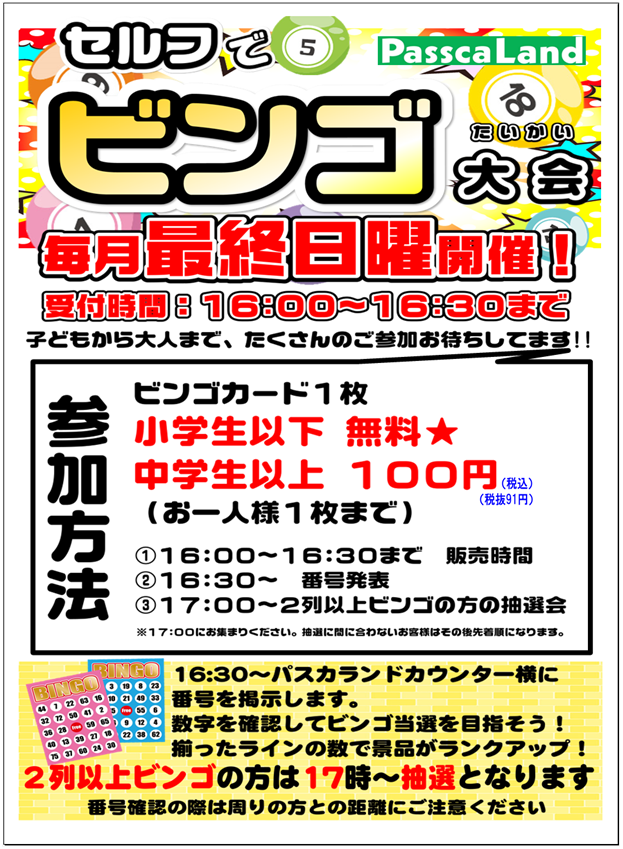 毎月最終日曜開催の当店恒例ビンゴ大会ですが、今月の開催は