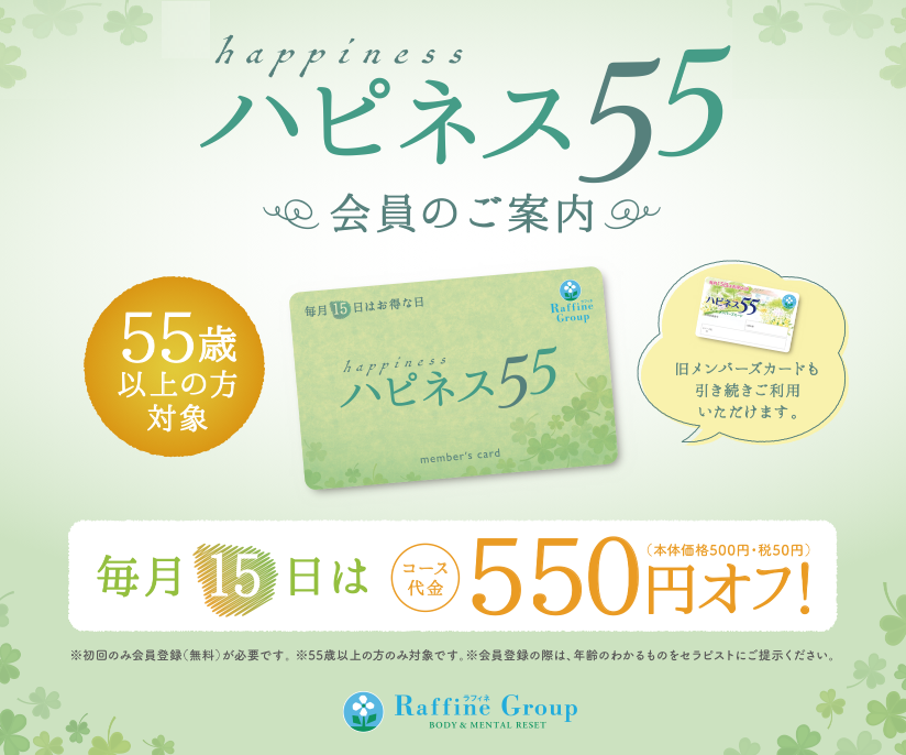 ラフィネでは、55歳以上の方を対象に『ハピネス55(ゴーゴー)』サービスを