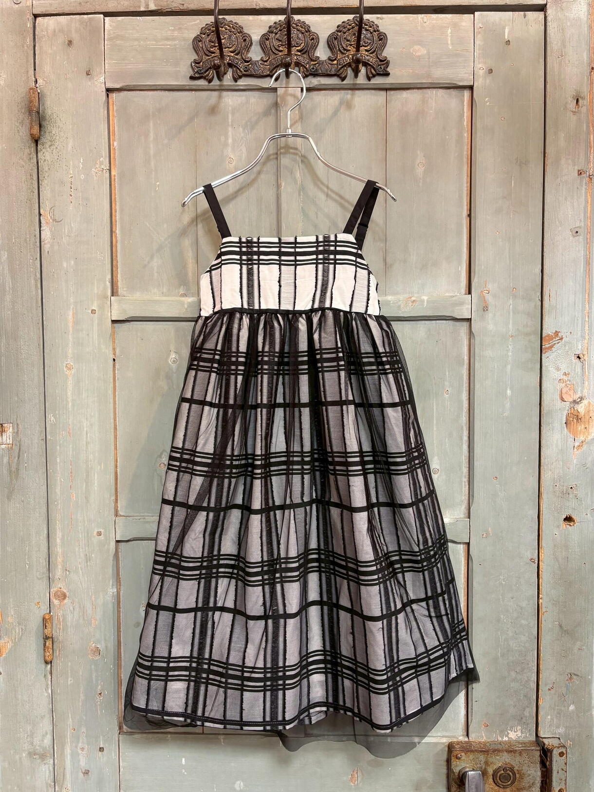 シアーフリンジチェックチュールジャンパースカート