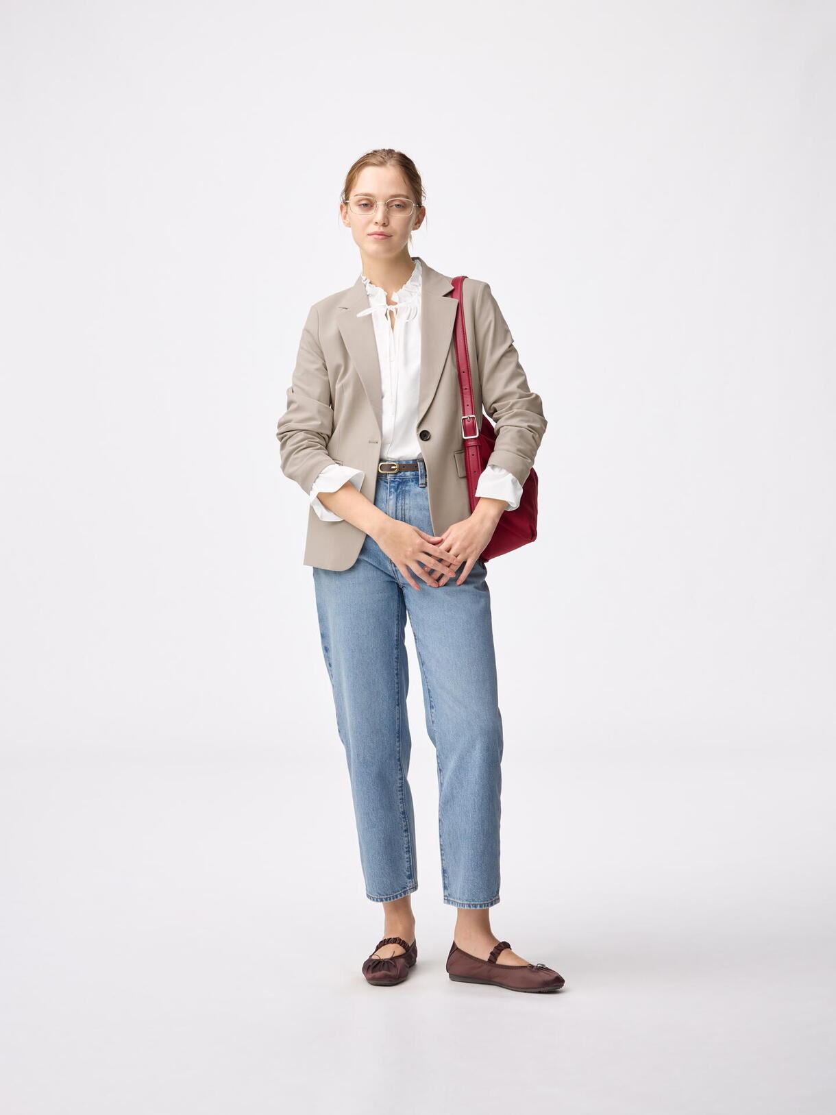 ウエストをややシェイプさせた、シャープなシルエットが特徴。
