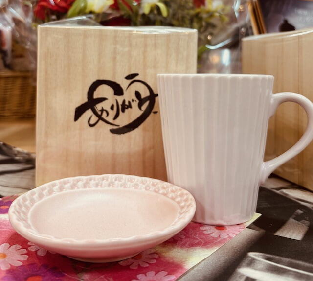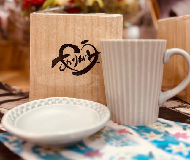 また 木箱に「ありがとう」のメッセージつきマグ&プレートセットも入荷しております。