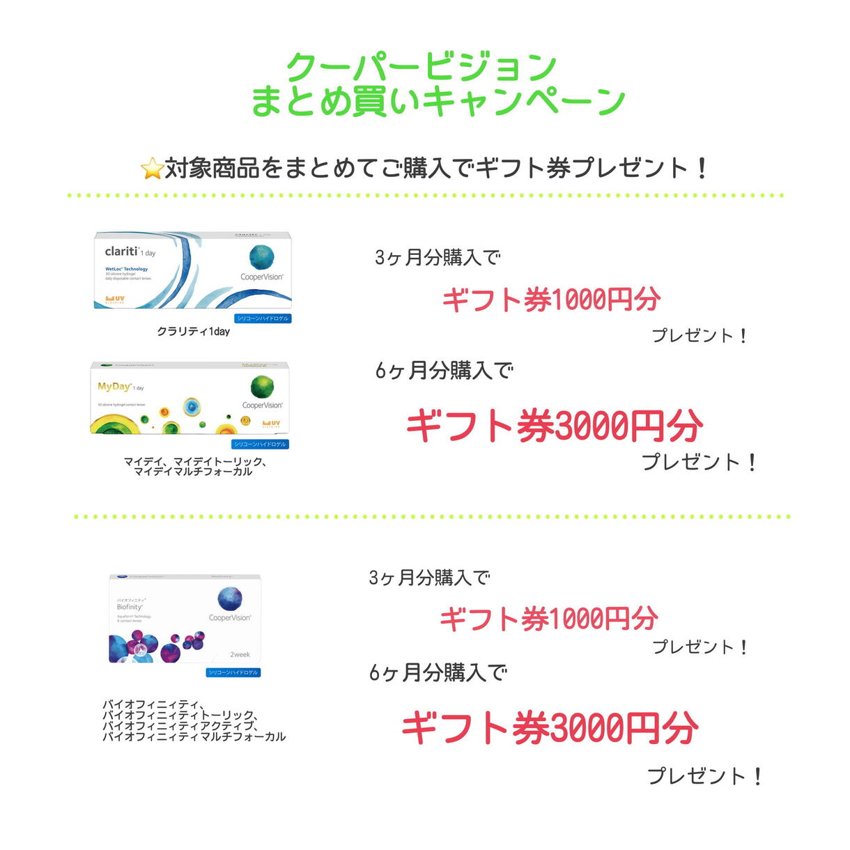 クーパービジョンまとめ買いキャンペーン開催中!