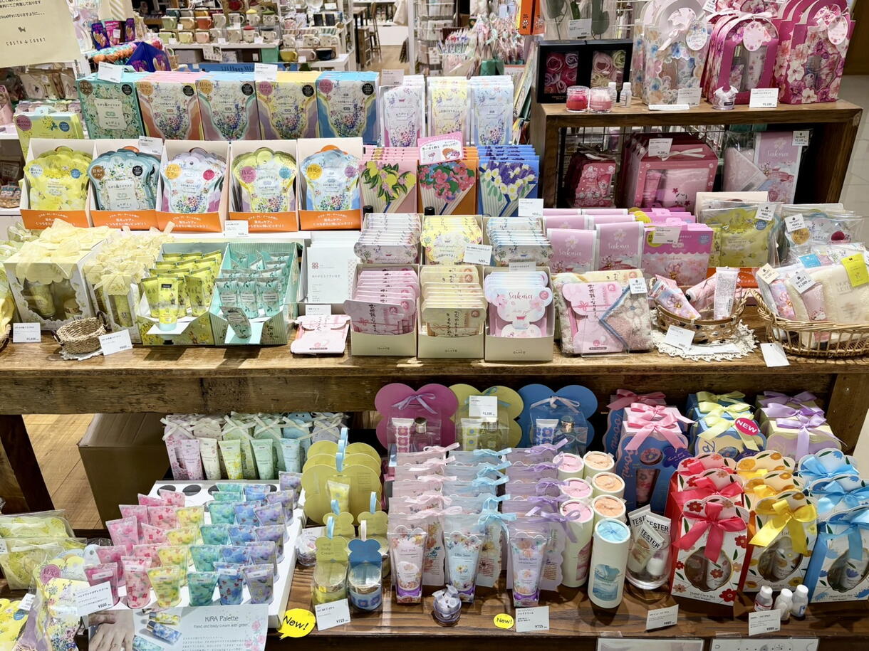 店内にはバスグッズ、アイマスク、食品など