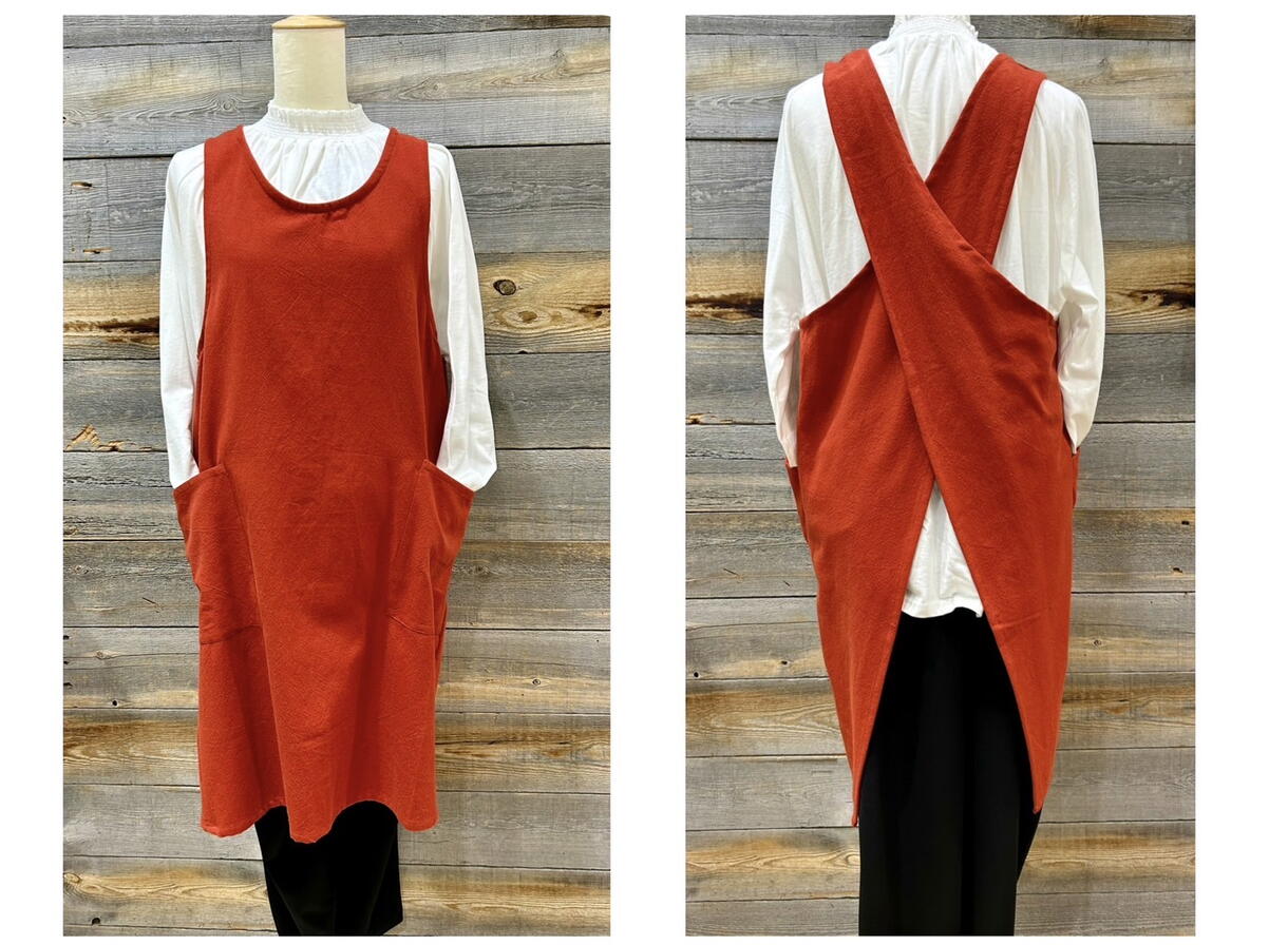 紐が長めで前でも後ろでも結ぶことができる、定番型のエプロン