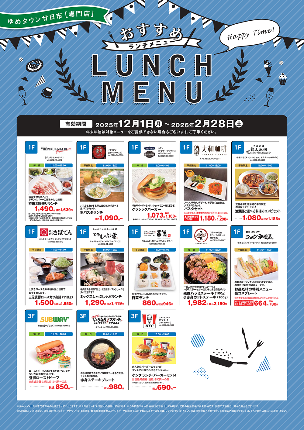 12/1(月)~2/28(土) [専門店] おすすめLUNCH MENU