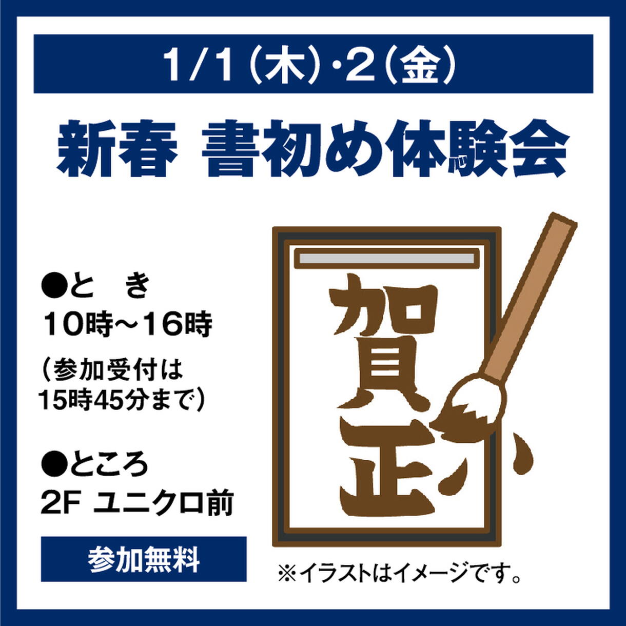 書初め作品はイベント終了後、2F ロデオクラウン前にて1/12(祝・月)まで展示します。