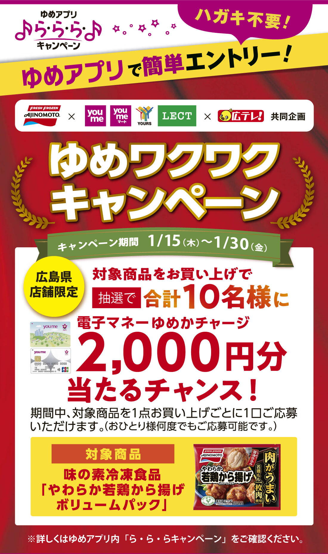 【ゆめアプリ ら・ら・ら・キャンペーン】広島県店舗限定『ゆめワクワクキャンペーン』
