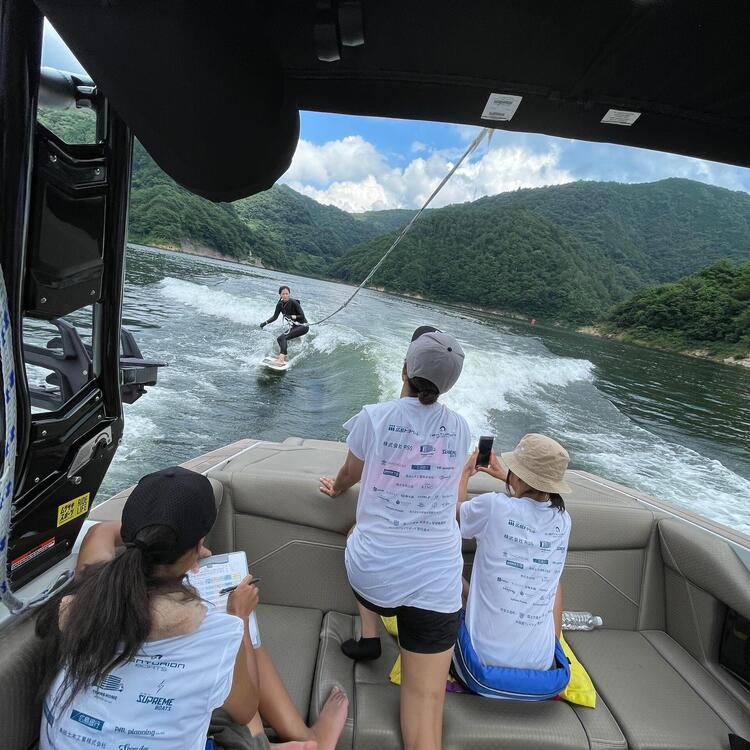 広島県山県郡安芸太田町にある龍姫湖にて、ウェイクサーフィンの大会が開催されました。