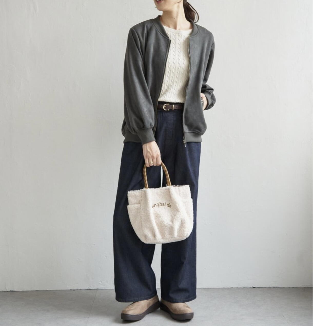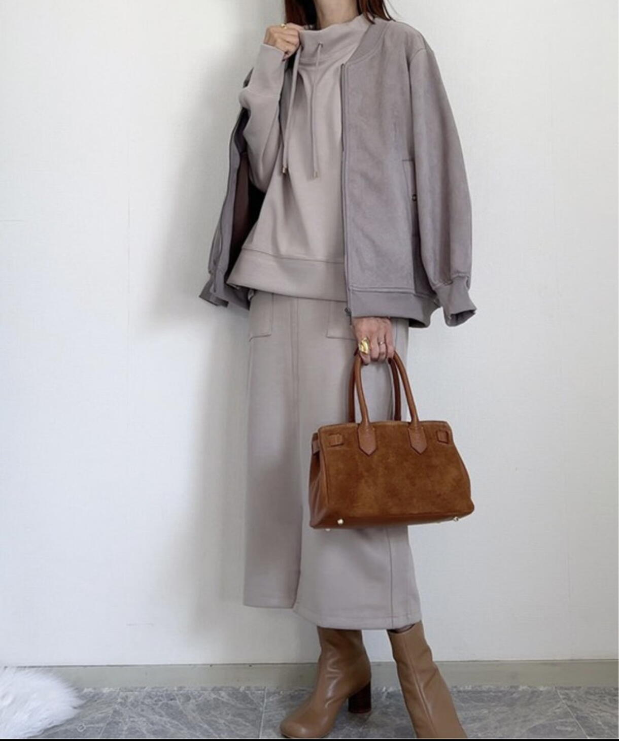 今回は、【雑誌InRed11月号】に掲載された、大人気のダンボールニットをリニューアルしたセットアップに、上品なスウェード調のリブブルゾンを合わせた着こなしをご紹介します♪