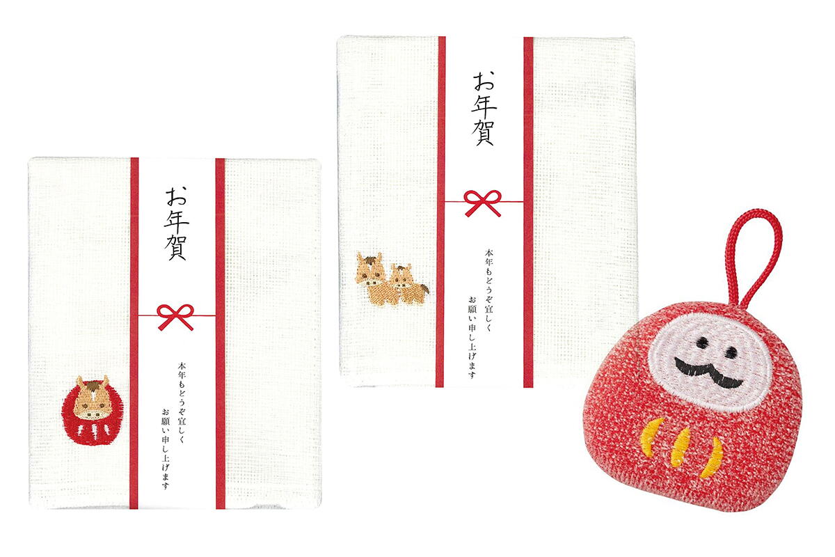 お年賀ご挨拶ふきん本体価格各500円(税込各550円)