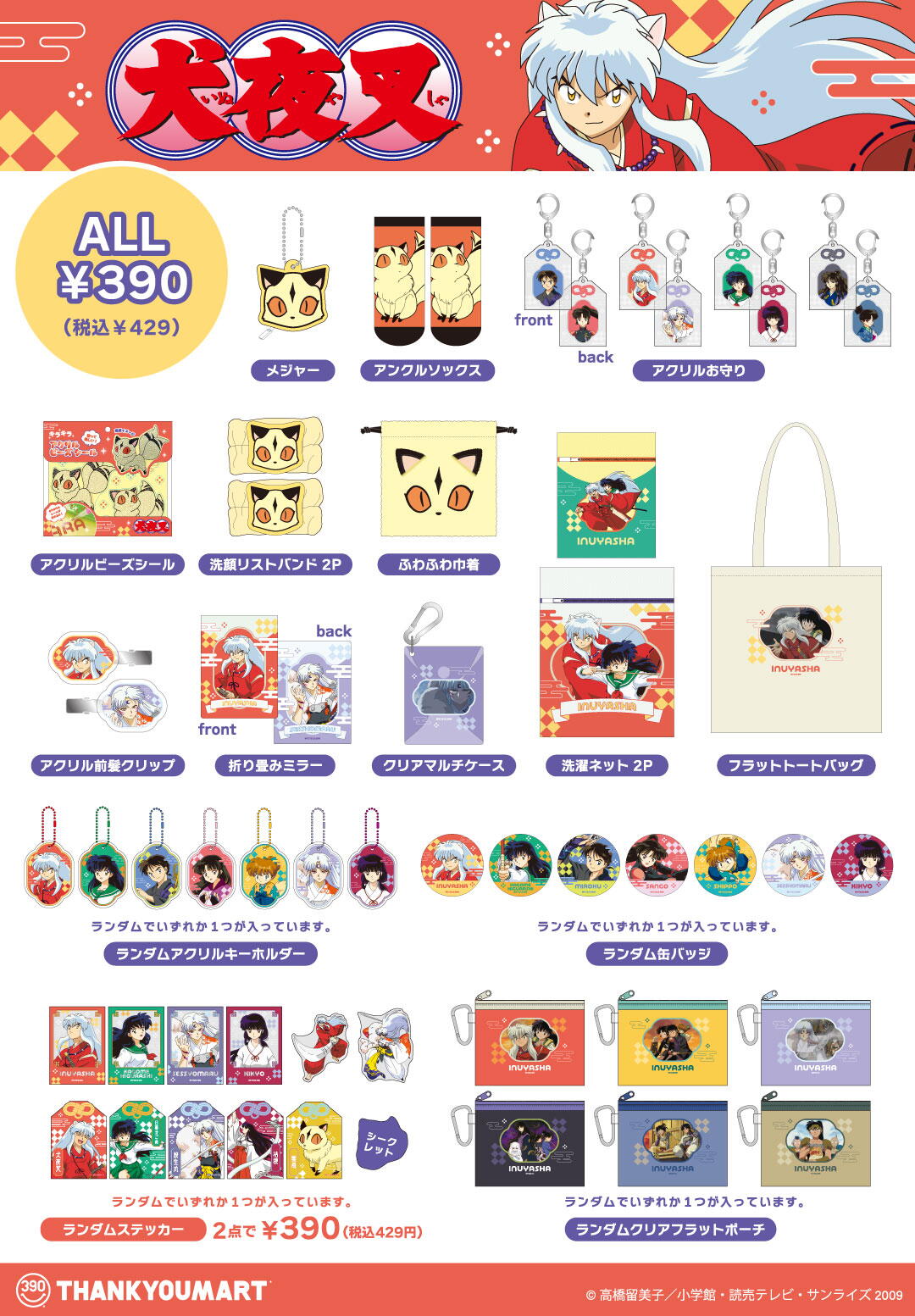 高橋留美子原作の名作 『犬夜叉』がサンキューマートに初登場! 「犬夜叉」「日暮かごめ」「殺生丸」など 人気キャラクターをフィーチャー♪ 懐かしさとかわいさを両立した 全18アイテムをラインナップ! 手に入るのはサンキューマートだけ◎ 是非、サンキューマート店舗でチェックしてみてください! 【店頭販売】 ■販売開始日:2025年12月12日(金)より、店舗毎・アイテム毎に入荷次第販売 ■商品詳細 :https://thankyoumart.jp/collections/inuyasha ※ご来店のタイミングにより在庫状況が異なります。あらかじめご了承ください。