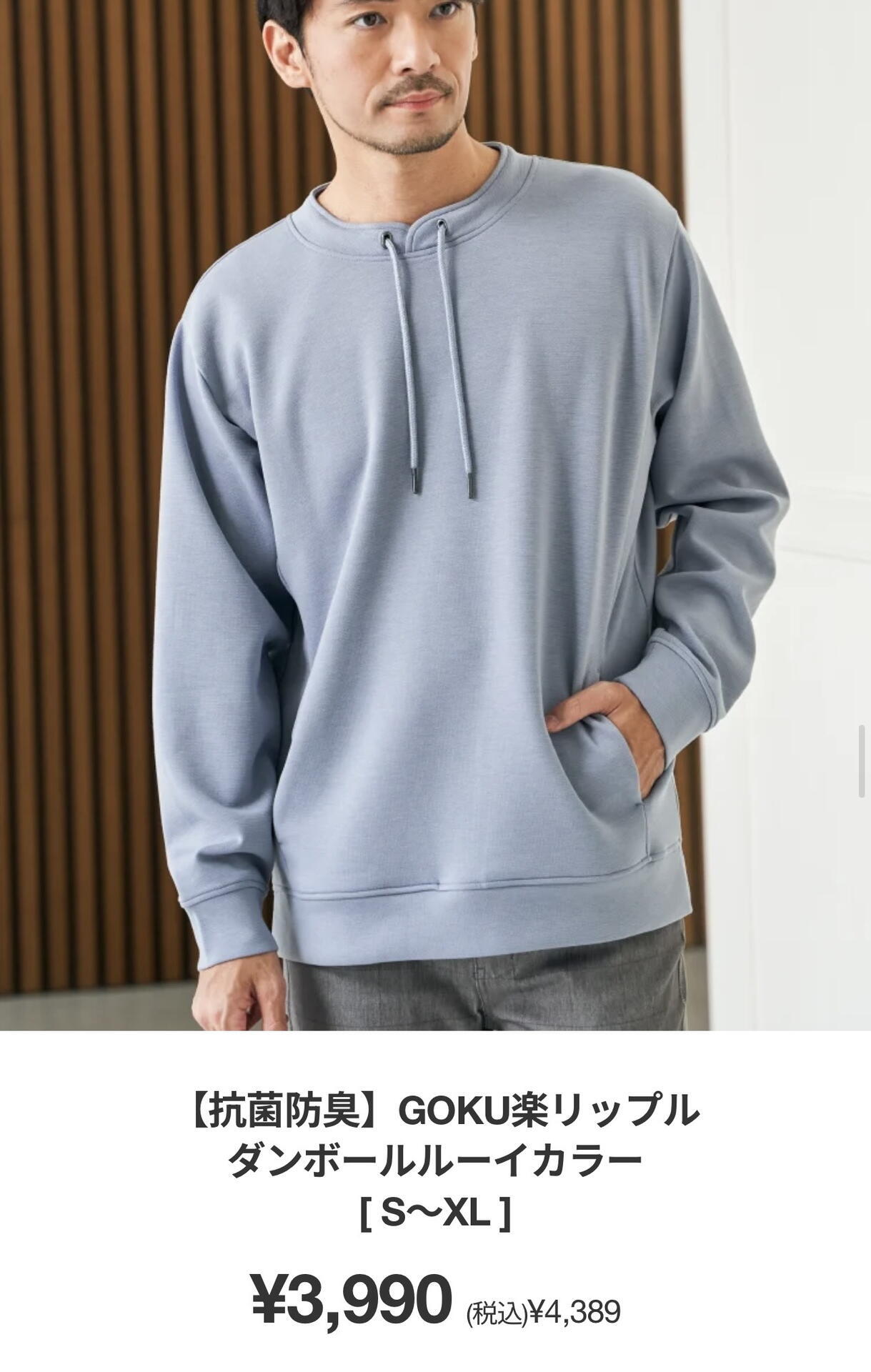 【抗菌防臭】GOKU楽リップルダンボールクルーネック