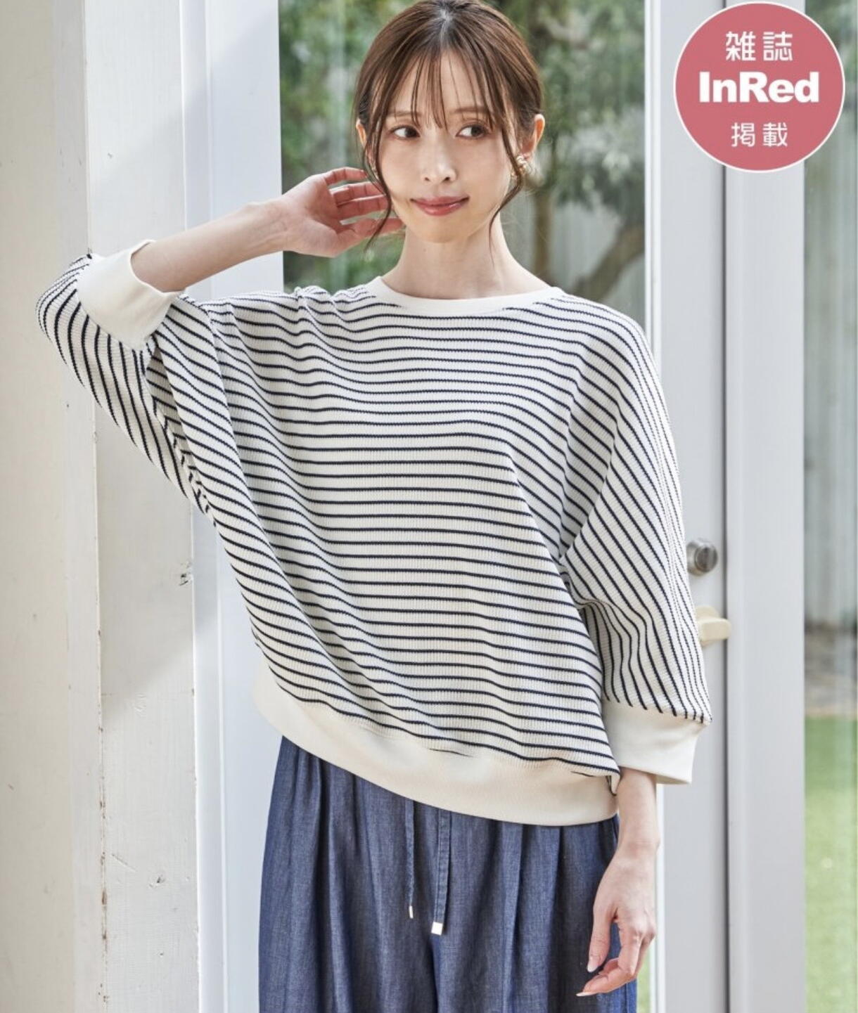 今回は【レディス】から、雑誌InRed5月号掲載されている、ゴールドジップが品のある軽やかなシアーブルゾンに、ボーダー柄のプルオーバーを合わせた着こなしのスタイルをご紹介します!