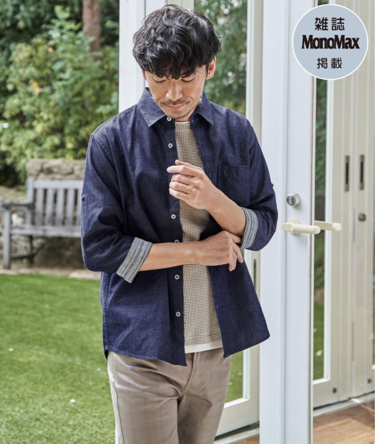 今回は【メンズ】から、雑誌「MonoMax」5月号で掲載された、デニムライクな素材で冷感機能を備えたフレンチリネンシャツを主役にした着こなしをご紹介します。