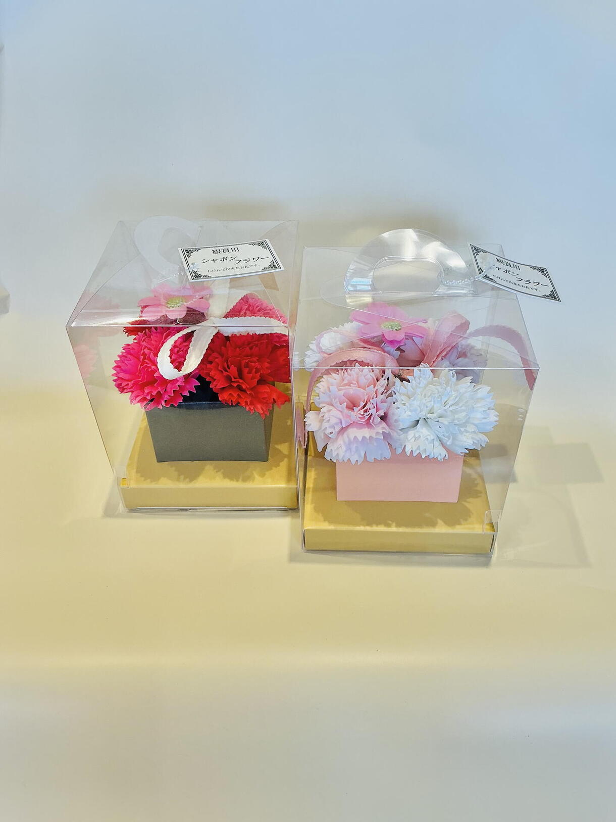 カーネーションのシャボンフラワー。