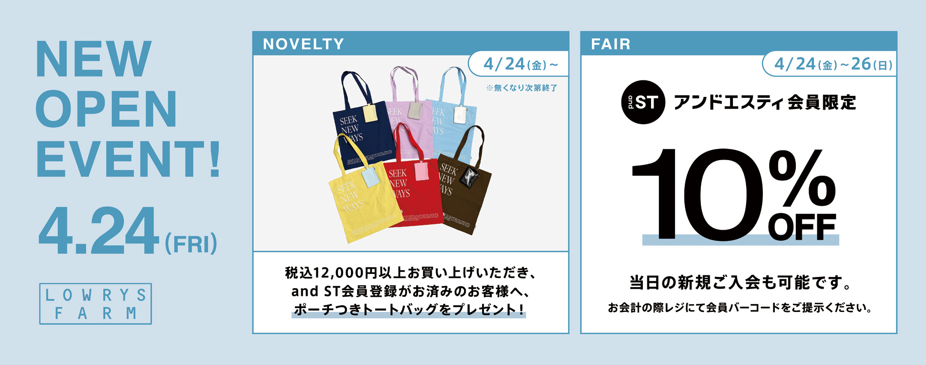 レディスカジュアル【LOWRYS FARM(ローリーズファーム)】 4/24 NEW OPEN!