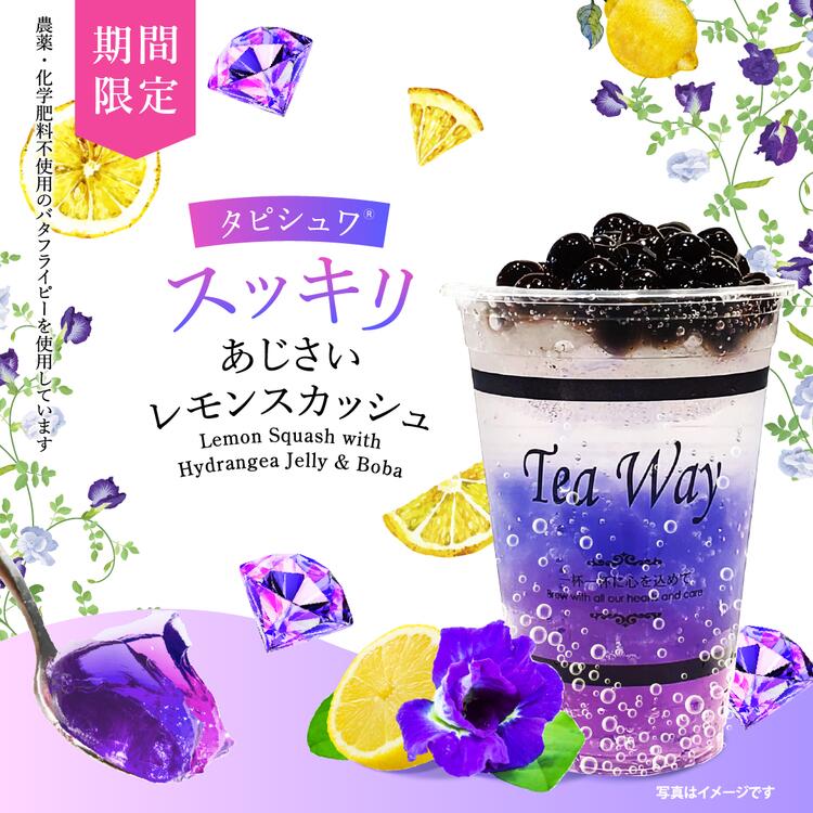 使用するタピオカは福岡の工場で高基準の衛生管理のもと、保存料や防腐剤を一切使用せずに製造したTea Wayオリジナルのコラーゲンタピオカです。