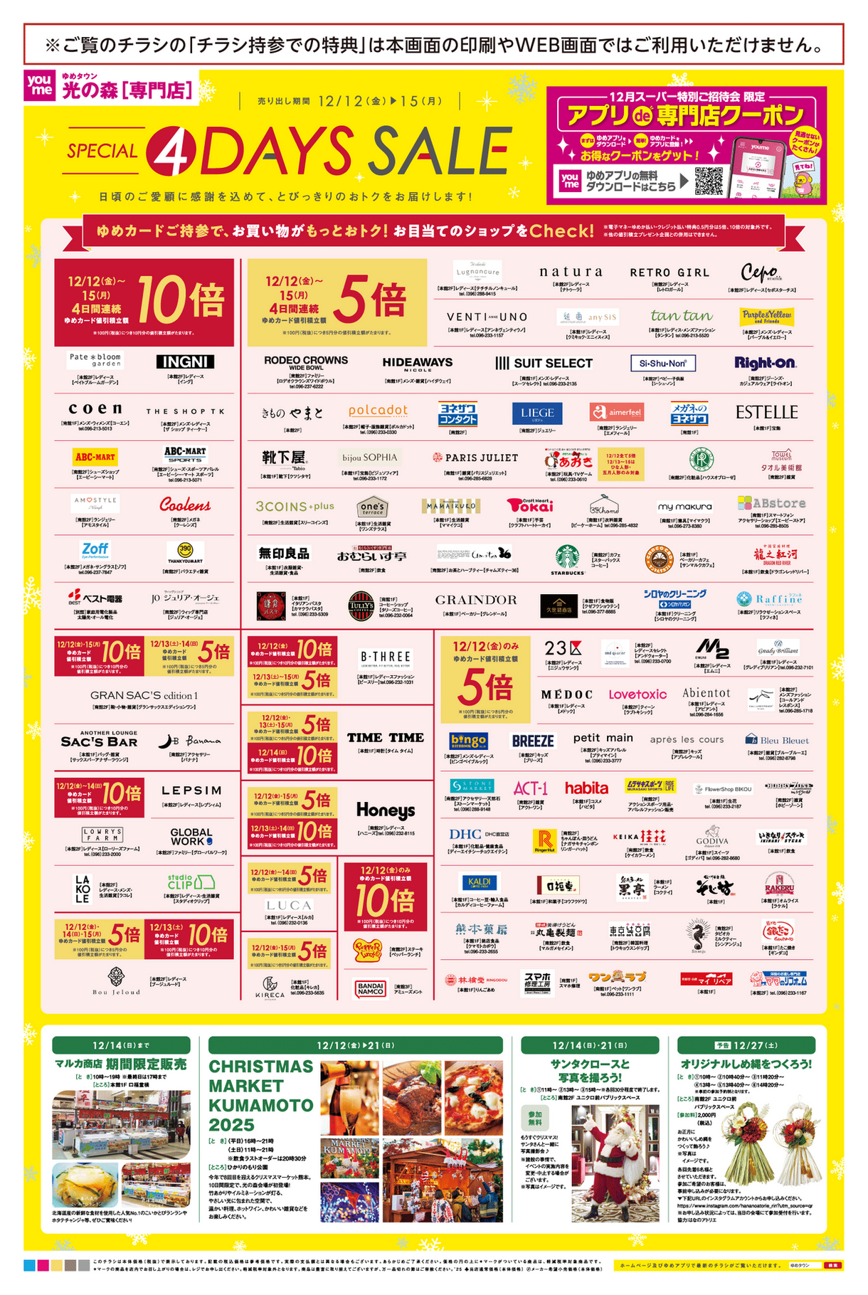 【12/12(金)~15(月)】専門店『SPECIAL 4DAYS SALE』