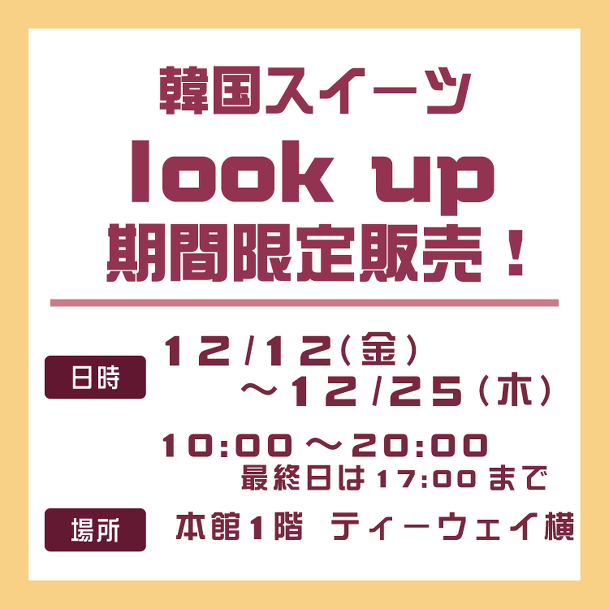 12/12(金)~25(木) 韓国スイーツ look up 期間限定販売!