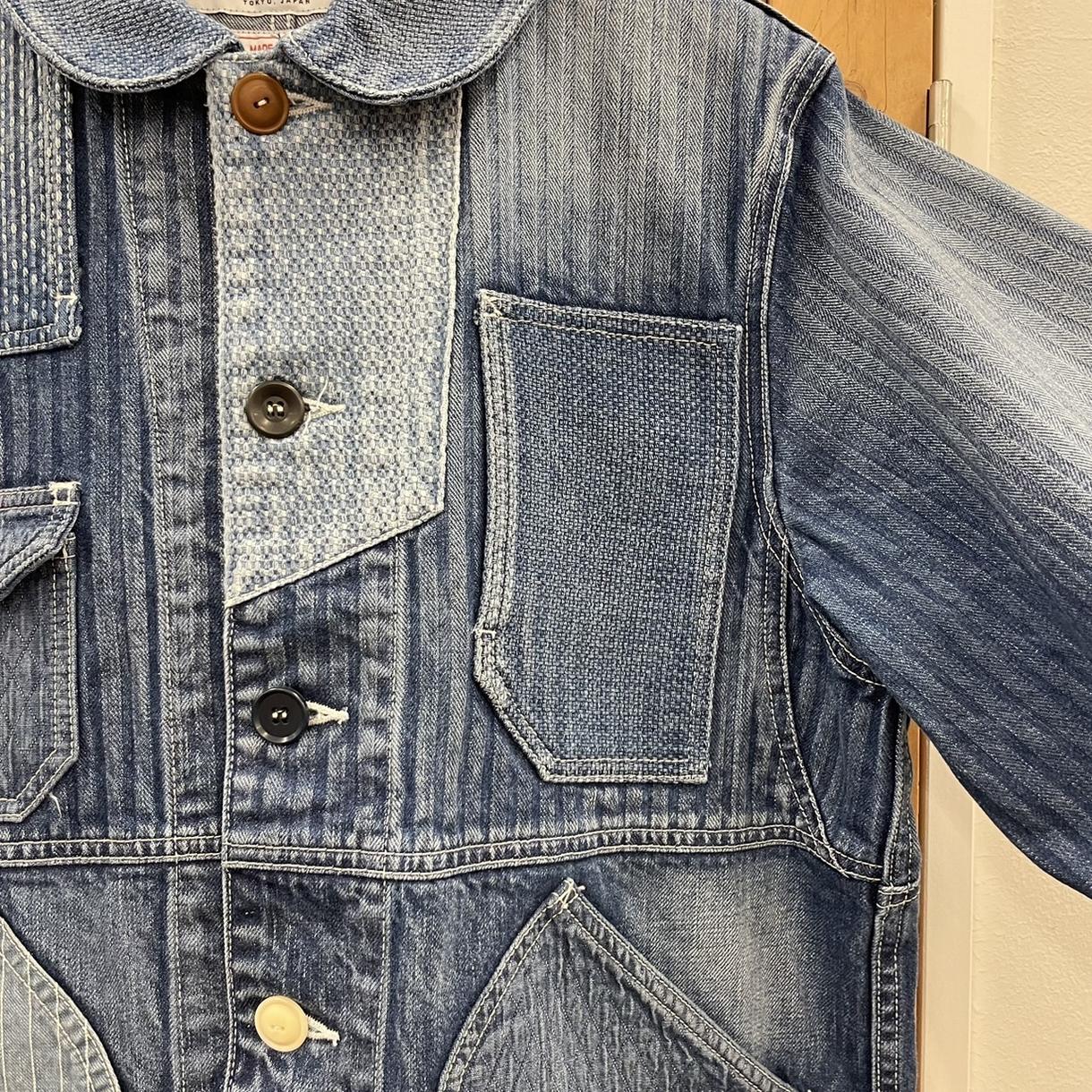 ナチュラルなウォッシュ加工に様々な生地を組み合わせ奥行きのある素材感に仕上げられた一着。