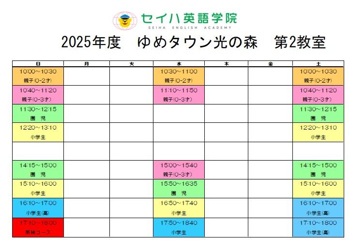 2025年4月からの時間割が決定いたしました。