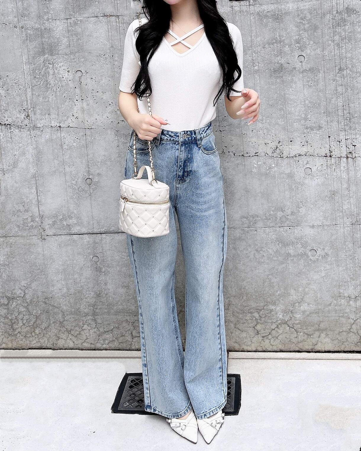【商品名】:オーロララインストーン付デニムパンツ
