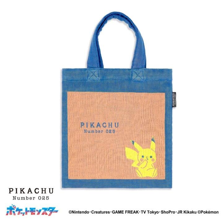 鮮やかなブルーの生地に手書き風のピカチュウが際立つガーゼ素材のミニバッグです