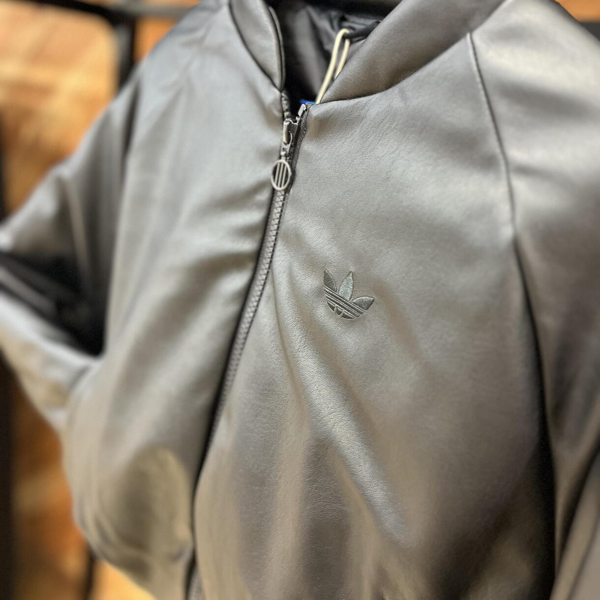 adidasのボンバージャケットは、滑らかな生地にトレンドのシルエット。